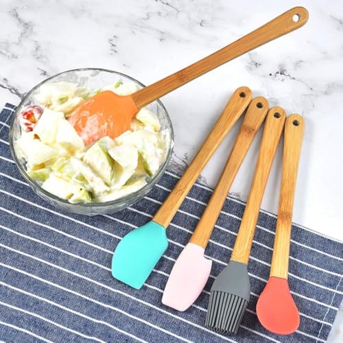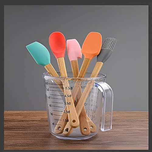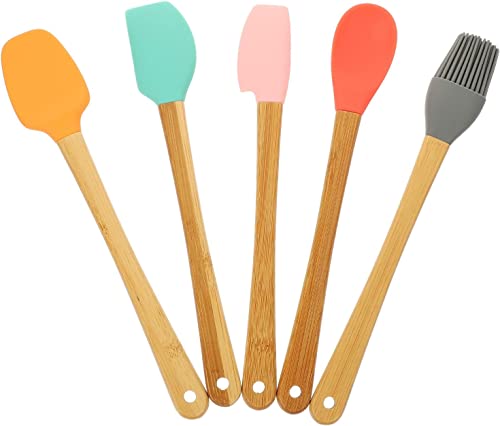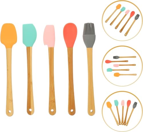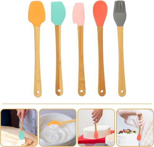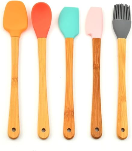 Generic - طقم أدوات خبز مميز من السيليكون مع مقابض خشب البامبو، مكون من فرشاة وملعقة سباتولا وسكينة ومقشطة وملعقة، عملي ومتين من FASHION.HOME (عشوائي, (5PEC))