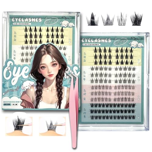 fashion mania - fashion mania 126 Pcs Self Adhesive Eyelash Clusters, No Glue Lashes 10-14mm, Anime Style Self Adhesive Lash Clusters, Remover No Residue Press,On Lashes Invisible Band With Lash Tweezer(B Stlye)