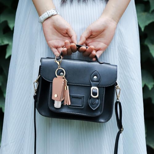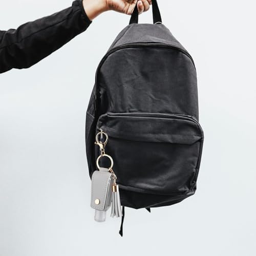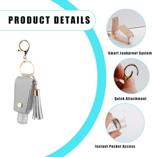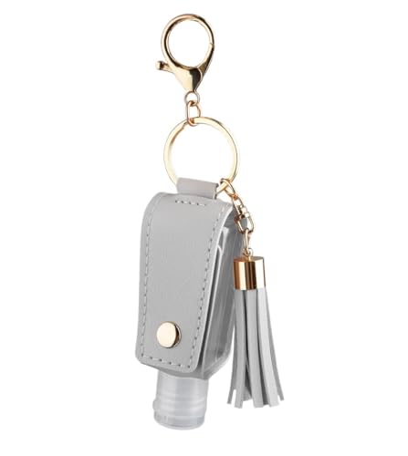 fashion mania - fashion mania 1Pack Refillable Travel Bottles Keychain,Leakproof Plastic Bottles with PU Leather Cover,Portable Hand Sanitizer Holders for Travel,Gym,Office (Grey)