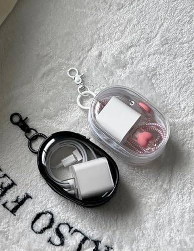 fashion mania - fashion mania 2 Pack Data Cable Charger Charging Storage Box, 4.1"x2.5"x1.3" Transparent Portable Headphone Storage Box(Black+Clear)