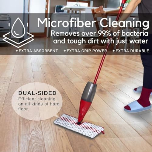 - 🏠 Mop head functional: Microfiber Spin Mop Refill provides a deep-cleaning solution for all your needs at home by effectively removing dirt, grime and over 99% of bacteria with just water! The Spray mop head design allows users to clean corners and hard-to-reach places.