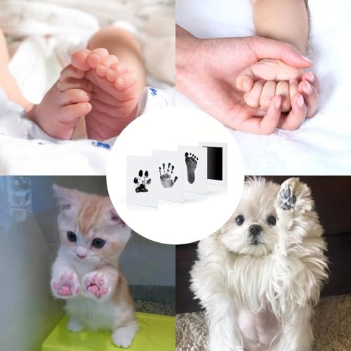 - [محتويات الصندوق]: وسادتا حبر و4 بطاقات، مناسبة للأطفال (0 - 6 أشهر) والقطط والكلاب الصغيرة والطيور الصغيرة.
