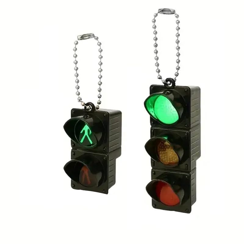 fashion mania - سلسلة مفاتيح باضواء المرور من فاشن مانيا مكونة من قطعتين مع حلقة اغلاق منقسمة، تعمل بالبطارية (خلية زر) - تعليقة شنطة انيمي لطيفة، قلادة دراجة - هدية مثالية لمحبي الانيمي والسائقين