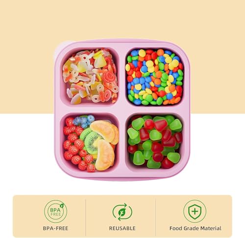 - [Colorful Divider]: 4 compartments snack box, including 6 colors, each compartment has 1/2 cup capacity. You can categorize your food according to your personal habits with the snack box, which is perfect for carrying to school, work or travel.