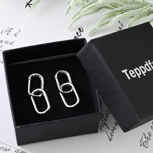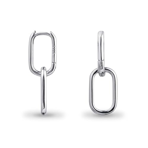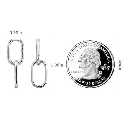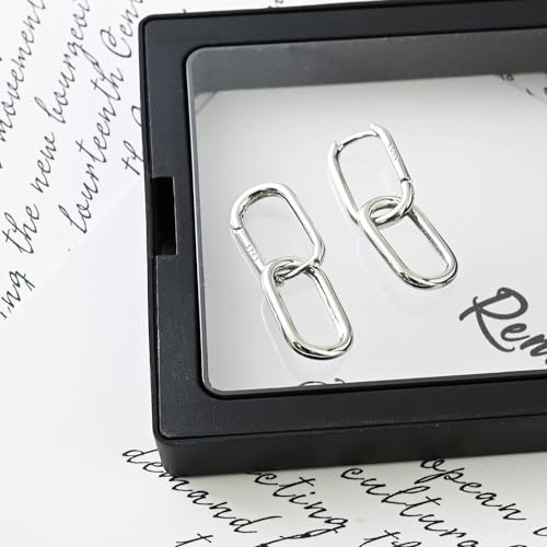 fashion mania - اقراط حلقية من الفضة الاسترليني عيار 925 بيضاوية مزدوجة للنساء، فضية صغيرة للاذن الحساسة، مربعة الشكل للهدايا، فاشون مانيا، ستانلس ستيل