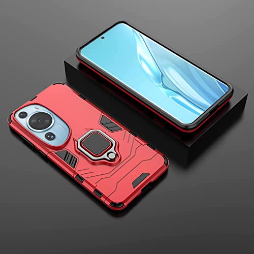 fashion mania - جراب حماية خلفي مضاد للصدمات مع حامل حلقي وحلقة إصبع لموبايل هواوي P60 ارت (لون أحمر)، البولي يوريثين الحراري بولي كربونات