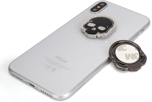 fashion mania - fashion mania Cell Phone Skull Ring Grip, Set of 2 Packs 360° Adjustable Finger Ring Holder, Suitable for Magnetic Car Mount Kickstand for Cell Phone-Black and White