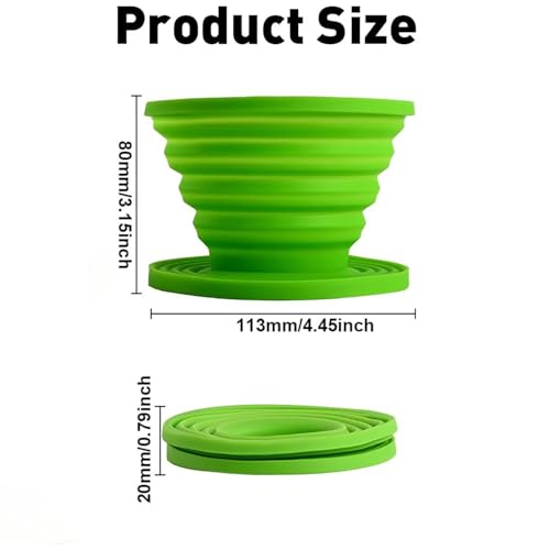 - [المقاس المناسب]: مقاس قطارة القهوة المصنوعة من السيليكون 4.5 × 3.1 انش (غير مطوية) و4.5 × 0.6 انش (مطوية). حجم صغير، مناسب لمعظم أكواب القهوة وفلاتر القهوة المخروطية.