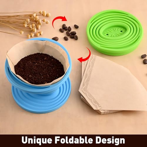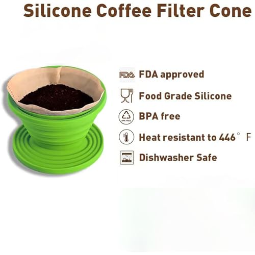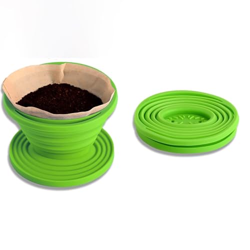 fashion mania - منقط قهوة قابل للطي من فاشون مانيا حامل فلتر محمول وقابل لإعادة الاستخدام السيليكون للتخييم والمشي لمسافات طويلة والمنزل والمكتب أخضر