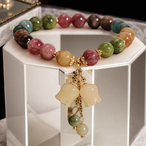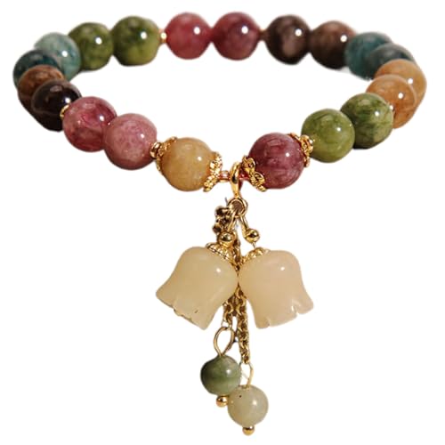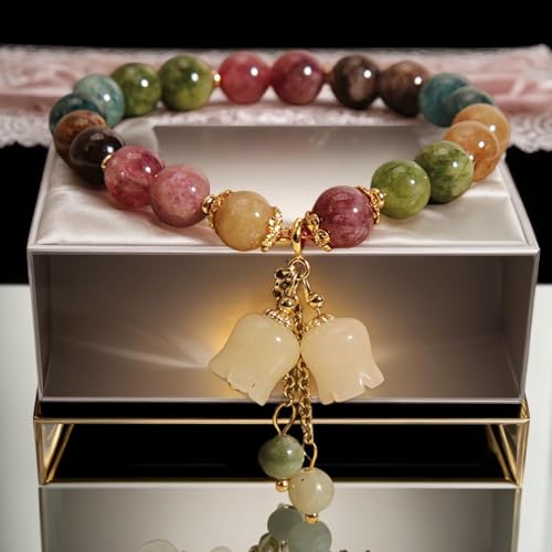fashion mania - fashion mania Crystal Bracelet for Women Gift Handmade Red & Green Bead Handmade Lily of the Valley - Stress Relieve Botanical Style with Artificial Carve - Exquisite Packaged Bracelet