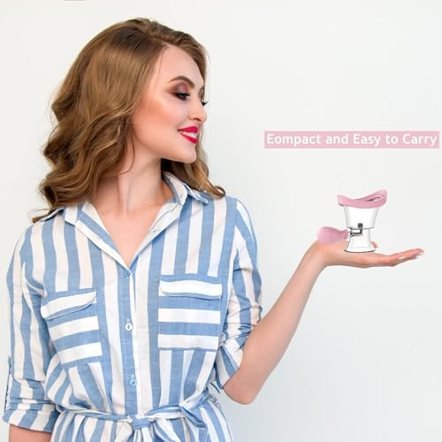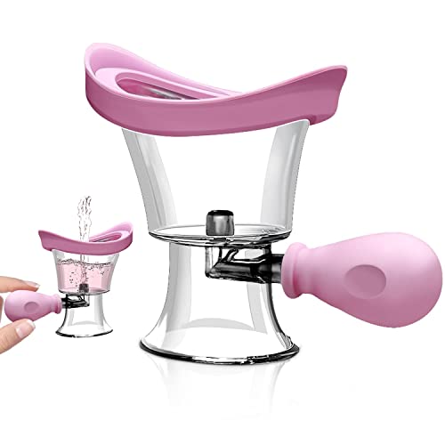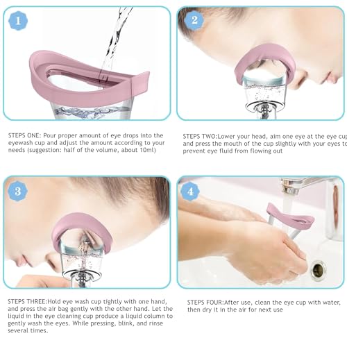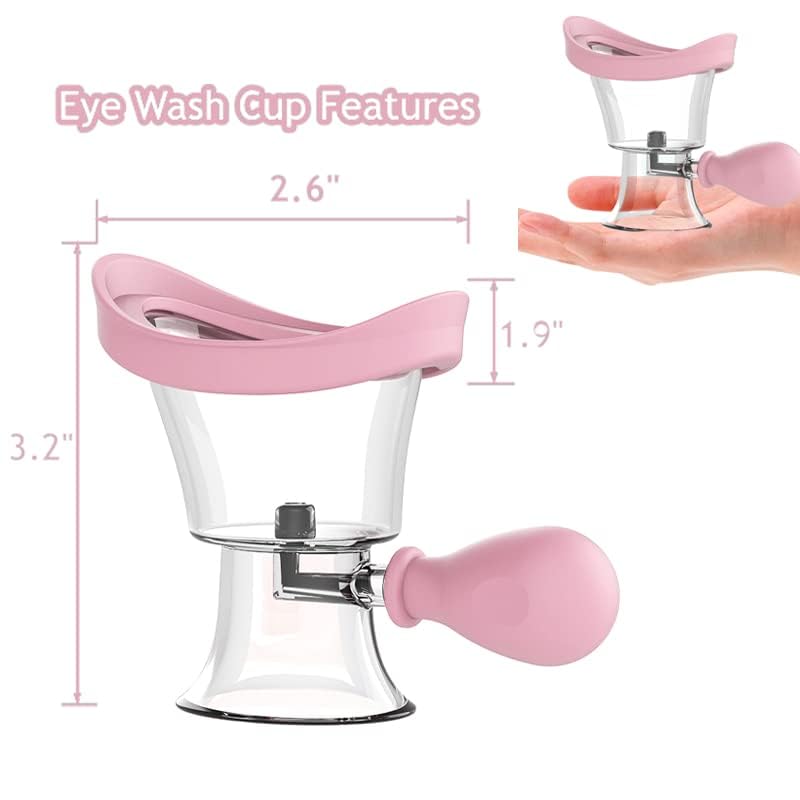 fashion mania - مجموعة أكواب غسيل العين المحمولة من السيليكون بضغط الهواء اليدوي وشطف مع حاوية تخزين حمام لتنظيف المكياج والغبار وتهدئة العيون فاشون مانيا لون زهري
