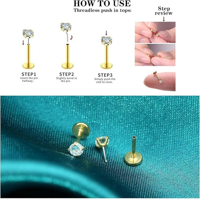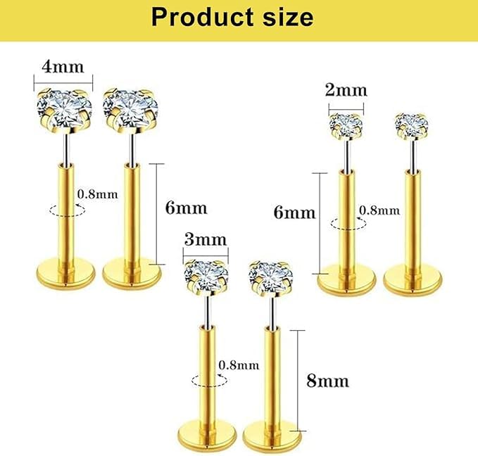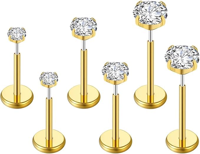 fashion mania - fashion mania Filled Threadless Nose Studs, CZ Nose Rings for Women Men, 316L Surgical Steel Labret Studs Lip Rings, Push in Flat Back Stud Earrings, Piercing Jewelry, Hypoallergenic