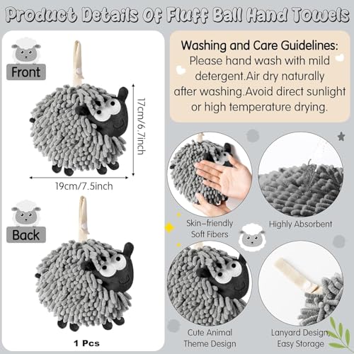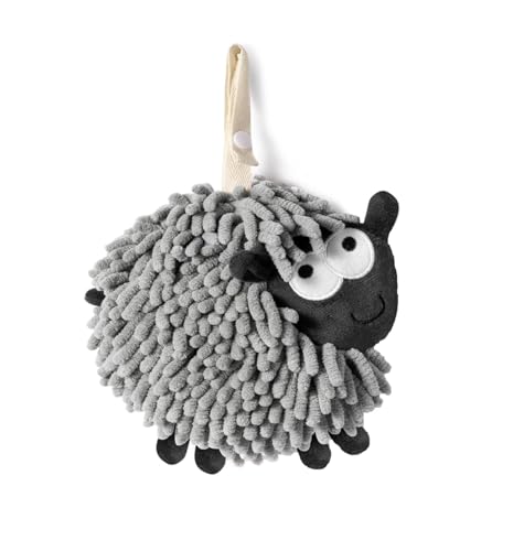 fashion mania - منشفة يد بتصميم كرة خروف رمادية من فاشون مانيا ناعمة وسميكة تعلق باليد مع حلقة تعليق لتزيين المطبخ والحمام شنيل