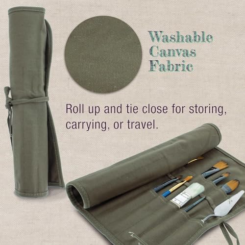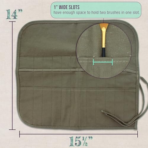 fashion mania - حامل فرش طلاء فني وشنطة تنظيم قابلة للطي شنطة حمل بـ16 جيب تحمي أقلام التلوين المائية والزيتية الأكريليك لتخزين الرصاص وأدوات الأقلام من فاشون مانيا قماش أخضر