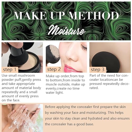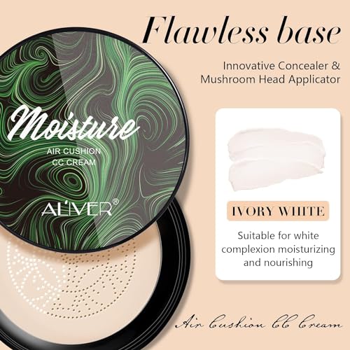 - 【Plant Skin Care Ingredients】The mushroom head air cushion cc cream Contains a variety of natural skin care ingredients, While applying makeup, it also balances sebum levels, reduces acne, spots, fine lines, and nourishes the skin.