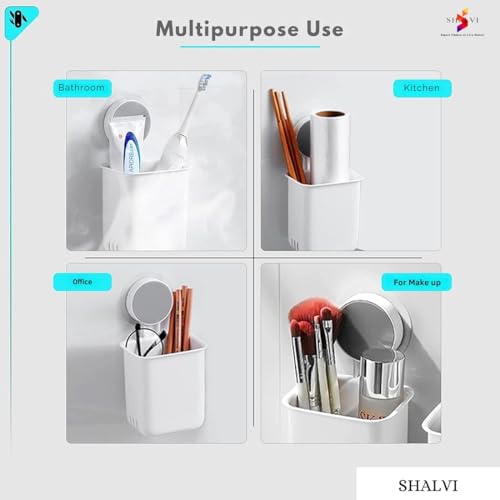 fashion mania - حامل فرشاة أسنان بلاستيكي ذاتي اللصق يثبت على الحائط / حامل فرشاة الأسنان / حامل فرشاة الأسنان لفرش الأسنان ومعجون الأسنان والحلاقة وفرش المكياج (عبوة من قطعة واحدة) أبيض