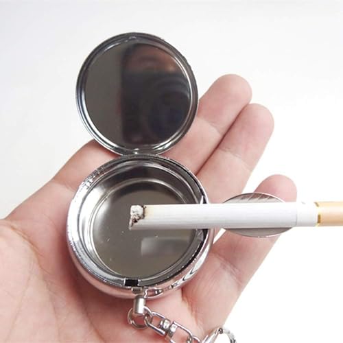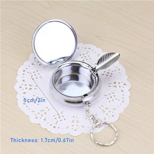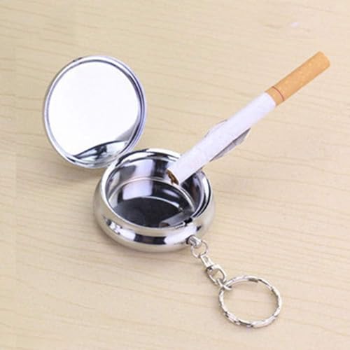 fashion mania - طفاية سجائر دائرية من الستانلس ستيل، سلسلة مفاتيح محمولة، طفاية سجائر للسيارة مع سلسلة مفاتيح، طفاية سجائر صغيرة الحجم للاستخدام الخارجي من فاشون مانيا، فضي