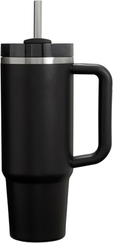 fashion mania - fashion mania Thermos cup, stainless steel vacuum insulated cup with lid and straw, for water, iced tea or coffee, smoothies, etc.,30 oz (black)
