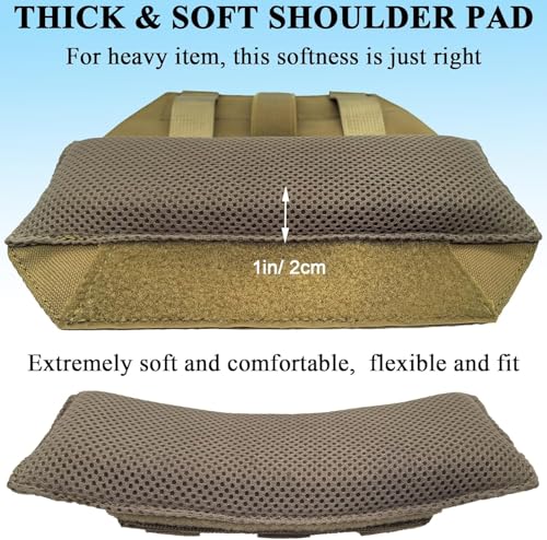 - [More Durable Shoulder Strap Pad]: The ultra thick shoulder strap pad adopts a Velcro design, which is easy to operate, connect and disassemble. Effectively relieve backpack pressure, free shoulders, suitable for tactical vests or camisoles such as FCS, LBT, JPC, as well as backpacks and crossbody shoulder straps with a width of 1 "~2.8". The hooks inside the pad generate strong friction, ensuring that the pad does not slide on the shoulder strap.