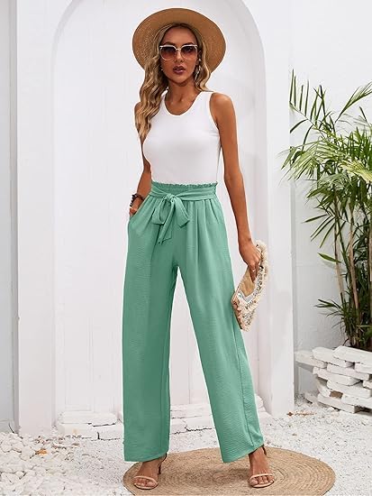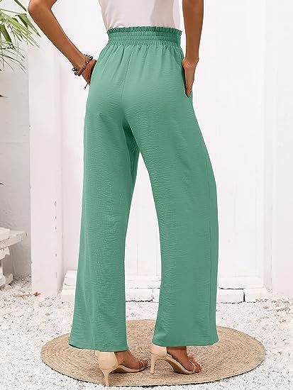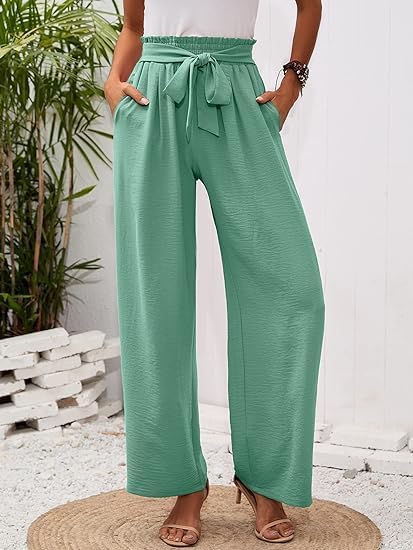 fashion mania - fashion mania Women's Wide Leg Lounge Pants with Pockets Lightweight High Waisted Adjustable Tie Knot Loose Trousers