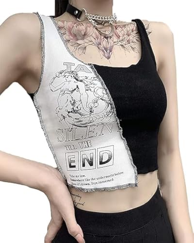 fashion mania - fashion mania Womens Gothic Summer Tank Tops Dark Grunge Croset Mall Goth Alt Harajuku Crop Tops Punk Emo Shirt