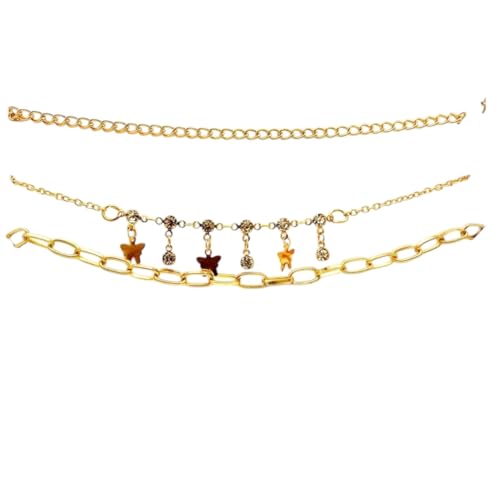 Generic - Fashion Necklace Set of Three Different Designs One Simple Gold Second Gold Tone with Star Pendants Third Large Rings