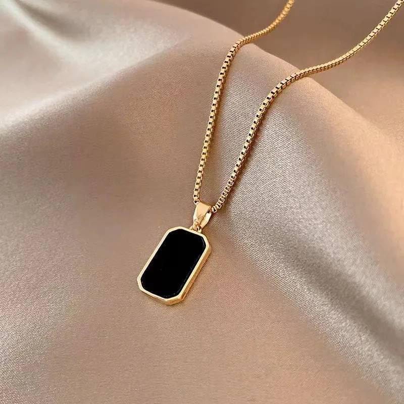 Generic - Fashion Necklace with Black Pearl Rectangle Pendant Fashion Jewelry for Women
