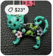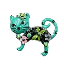 Generic - Fashion Rhinestone Brooch For Women Brooch Collar Pins Corsage Crystal Leaves Insect Brooch Badges Jewelry Accessories (Cat Brooch) 3.5cm x3.4cm Green Color