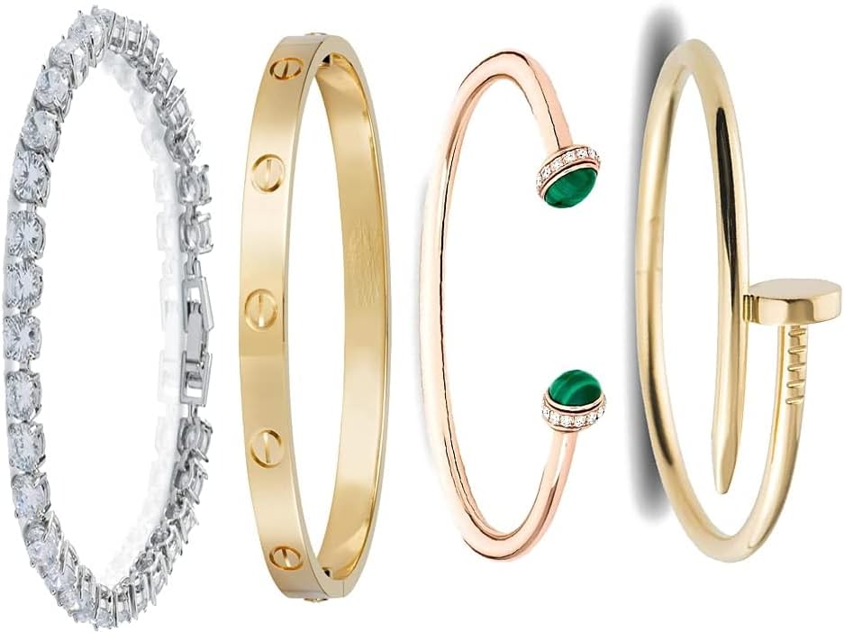 Generic - Fashion Stainless Steel Gold Plated Cubic Zirconia Stud Tennis Ball Bracelets Festival