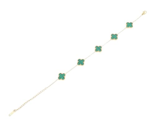 Generic - Fashion Wide Stainless Steel Cute Adjustable Size Bracelet for Women, Gold and Green TON-A-1463