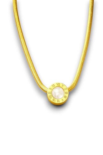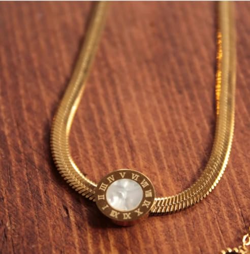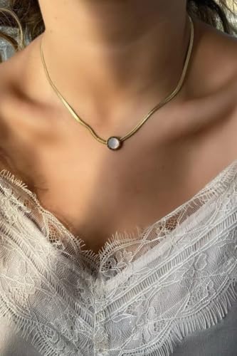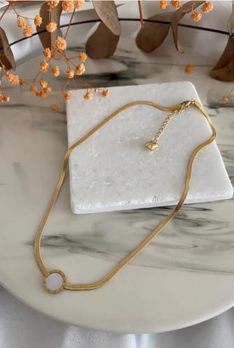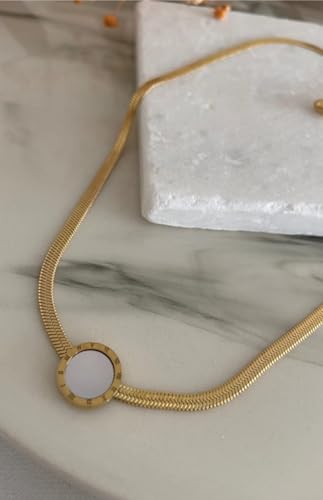 Generic - قلادة أنيقة نسائية ذهبية مع حلية دائرية، سلسلة معدنية ناعمة مع قفل وسلسلة تمديد