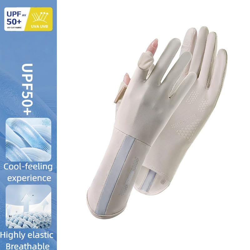 FRIDAYIN - Fashion Women's Anti-ultraviolet Sunscreen Ice Silk Gloves Fingerless Touch Screen Non-slip Driving Cycling Fishing Sunscreen Breathable Gloves Suitable for Summer outdoor