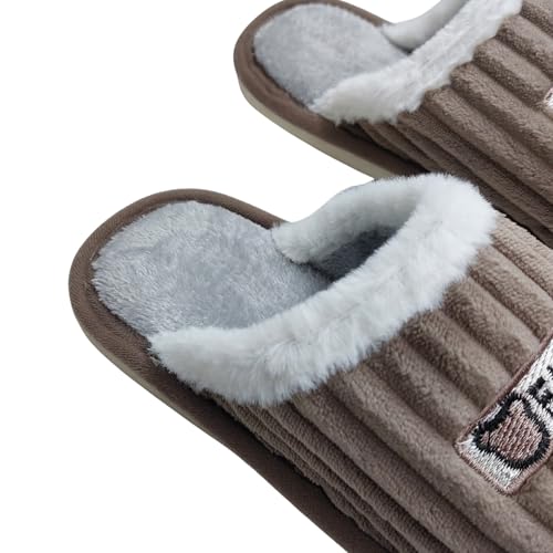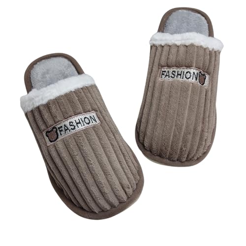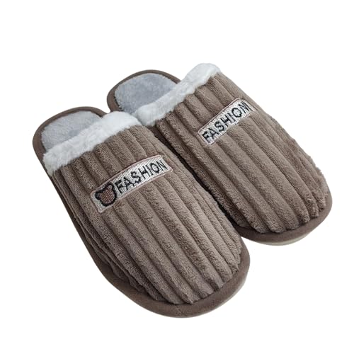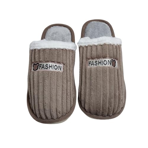 Generic - شبشب شتوي عصري للنساء مبطن بالفرو الناعم، حذاء داخلي مضلع بني سهل الارتداء، حذاء منزلي مريح مقاس 42/43 EU- لكلوك شتوي حريمي
