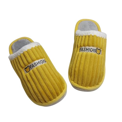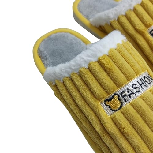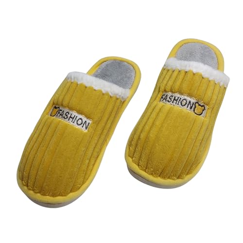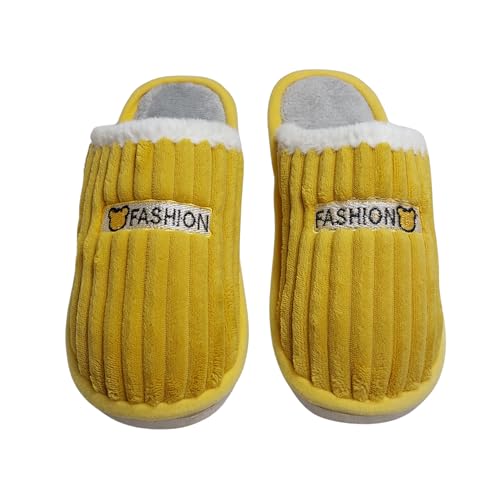 Generic - Fashion Women's Winter Slippers, Soft Fur Lined, Yellow Ribbed Slip-On Indoor Footwear, Cozy House Shoes Size 40/41 - لكلوك شتوي حريمي