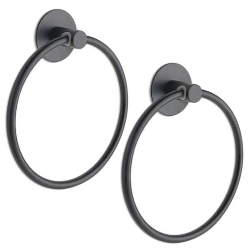 Fashionclubs - حامل مناشف للحمام، حلقة منشفة سوداء غير لامعة، قطعتان من حامل مناشف اليد اللاصق المثبت على الحائط، شماعة مناشف للحمام والمطبخ، اكسسوارات حمام من الستانلس ستيل