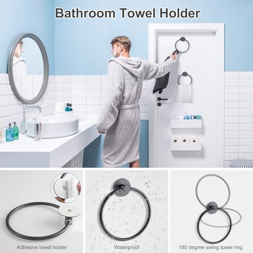 - [حجم مثالي، موفر للمساحة]: بأبعاد 7.1 انش × 5.9 انش × 1.5 انش، الحجم الصغير يجعل حامل المناشف حلاً مثاليًا لتعليق منشفة اليد في الحمام. حلقة المنشفة الخاصة بنا مثالية للحمامات ذات المساحة المحدودة وغرفة النوم وغرفة الضيوف والمطبخ وما إلى ذلك.