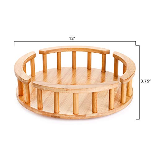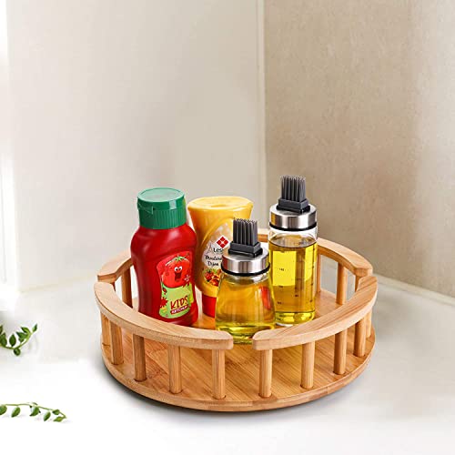Fasmov - فاسموف قرص دوار من الخيزران ليزي سوزان بقطر 12 انش، منظم خزانة مطبخ من الخيزران من طبقة واحدة، دوران 360 درجة مع مقابض مزدوجة لتنظيم الخزانة او سطح الطاولة