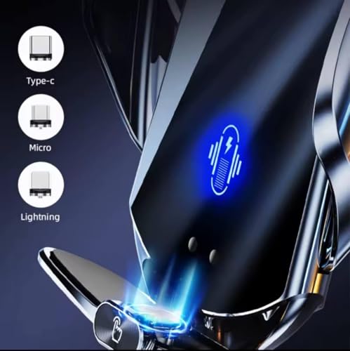 Generic - Fast Charging Mount - Wireless Automatic Touch Sensor Car Phone Holder Offering 15W Power Output, Compatible with Type-C, Micro, and Lightning Cables for Optimal On-the-Go Device Charging (Black)
