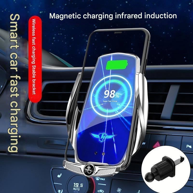 • This premium car phone mount combines durability with aesthetic appeal, featuring a robust metallic finish and stylish blue ambient lighting effects. The bright LED display keeps you informed of the charging status and battery percentage in real-time, offering both function and a touch of elegance to your vehicle's interior. The stable support it provides during charging makes it an indispensable accessory for anyone who values both performance and style in their driving experience.