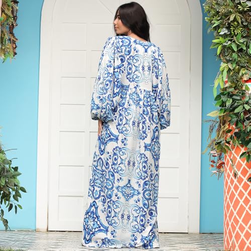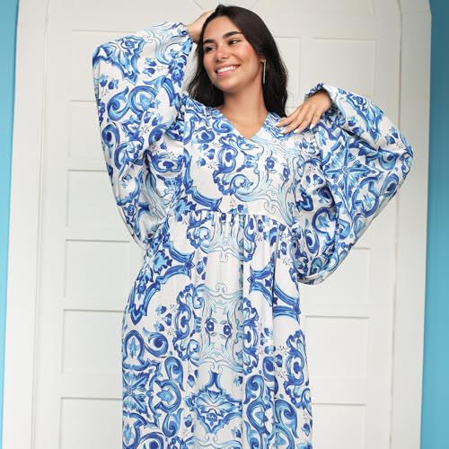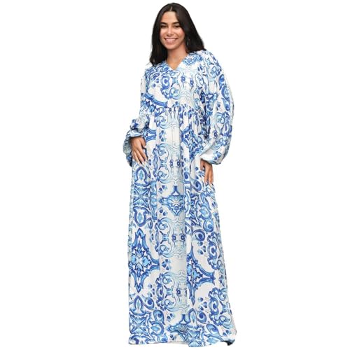 FRIDAYIN - Fast fashion Casual V-neck Printing Lantern sleeve Long Dresses