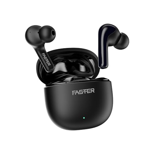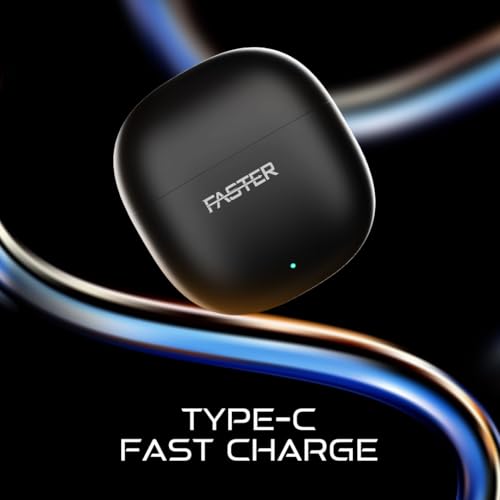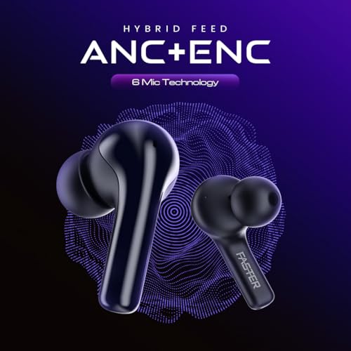 FASTER - فاستر سماعات اذن بلوتوث لاسلكية من فيوجن اكس - 6 ميكروفونات ايه ان سي، اي ان سي، 5.4، سماعات اذن بلوتوث 5.4 بطارية 40 مللي امبير في الساعة، سماعات اذن لاسلكية داخل الاذن 10 ملم، سماعات اذن لاسلكية