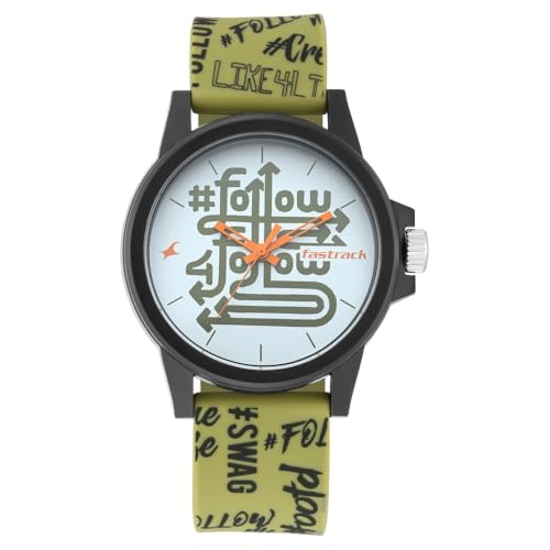 Fastrack - Fastrack Watch Unisex , Quartz Movement, Analog Display, Green Silicone Strap-68012PP10