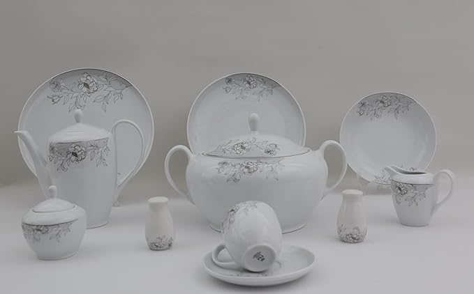- LUXURIOUS DESIGN: Venus Roses Collection Premium Dinning Set - Falcon Platinum Edition with elegant details and soft patterns add a touch of beauty to every table. 6 person lunch set: includes 74 full serving and hospitality pieces, perfect for large families, determination and events Elegant white design and luxurious pink trim: combines simplicity and sophistication to add a luxurious touch to your table High Quality Porcelain Materials - Heat and Scratch Resistant:Fahhi Mahmood Chinese Collection Made of Pure Import Porcelain, Durable and Microwave and Dishwasher Safe with No Color or Pattern.