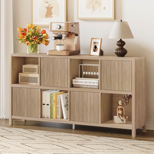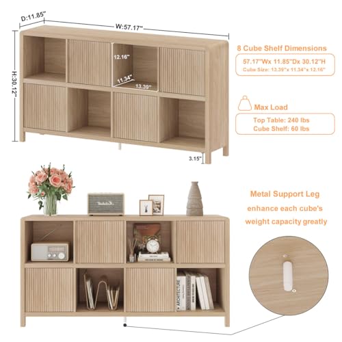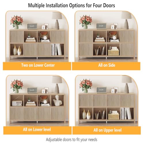 - [8 Cube Bookshelf with 4 Doors]: This cube bookcase features a unique adjustable 4-door design, allowing you to position the doors on any cubes. It offers the perfect balance between hidden storage and open display to match your needs and style preferences. The door's unique waveform panel showcases beautiful natural wood grain. Its timeless design fits well in the living room, home office, bedroom, entryway, or kitchen, complementing various furniture styles