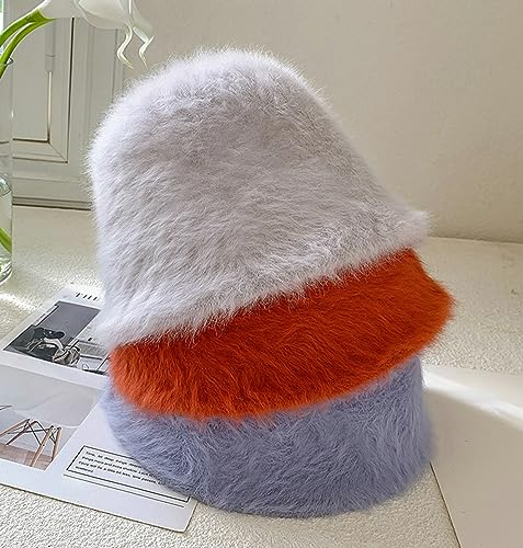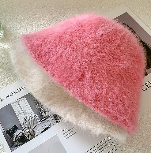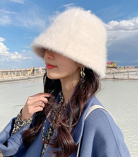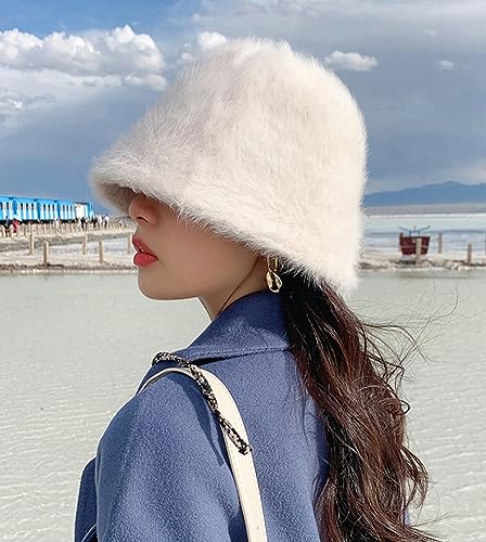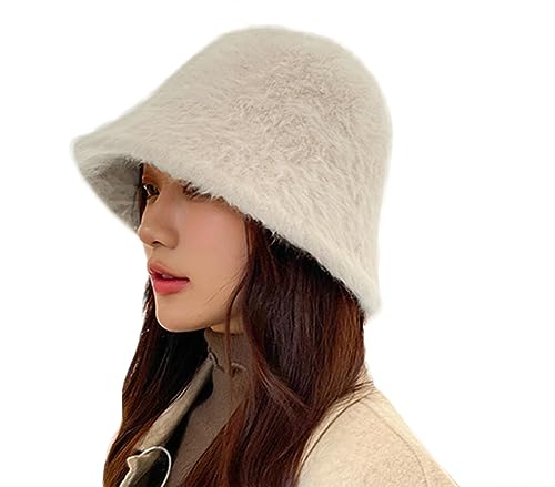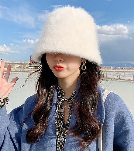 Solyinne - Faux Fur Bucket Hat Beanie Hats for Women Cute Solid Color Beanie Winter Cap Warm Skull Cap Y2K Cap