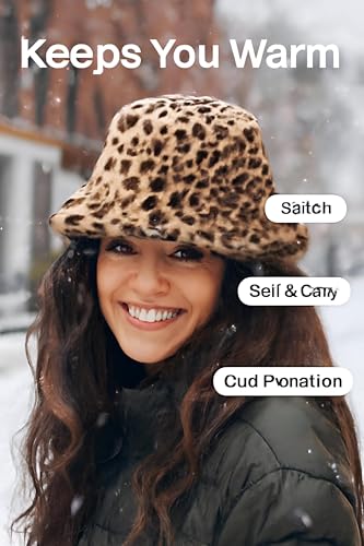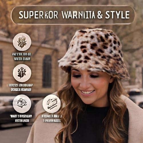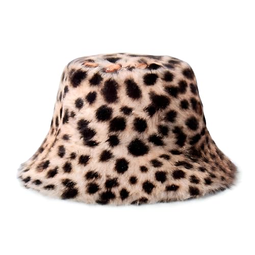 Generic - Faux Fur Leopard Bucket Hat - Winter Warm Plush Accessory for Retro Style, 56-58cm Head Circumference, Luxury Warmth and Trendy Fashion Statement