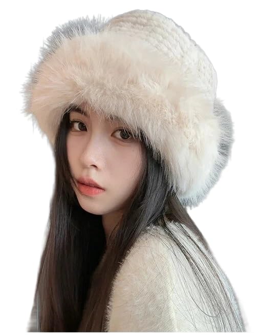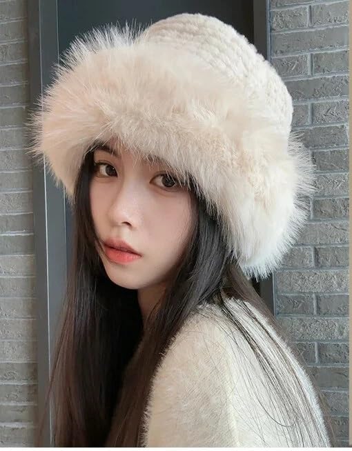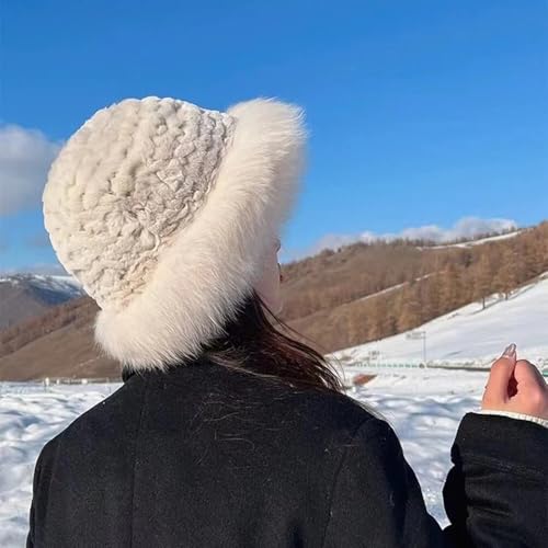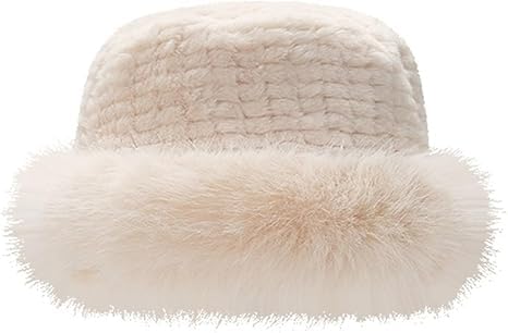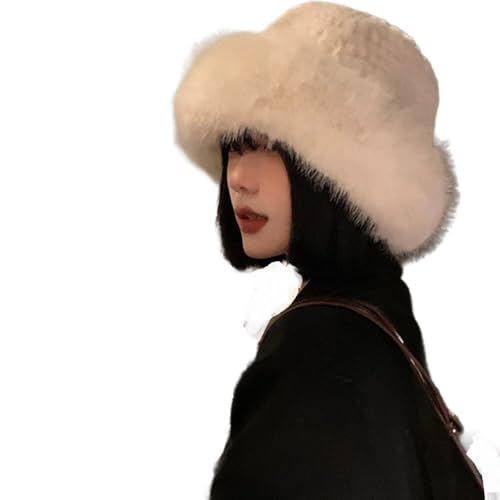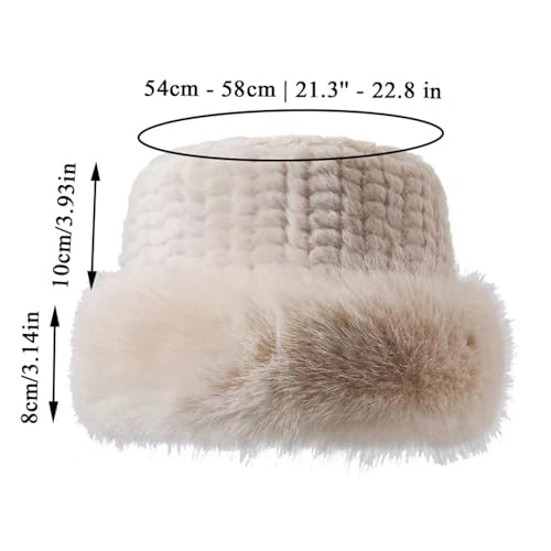 Generic - Faux Fur Winter Bucket Hats for Women Warm Fluffy Fur Hat Adjustable Daily Casual Sports Travel Ski Beige