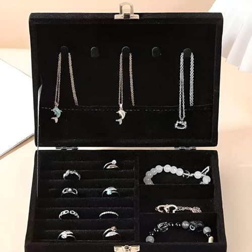 Generic - Faux Leather Case - Dual-layer jewelry organizer with a stylish design, equipped with a secure lock and key, ideal for safely storing necklaces, earrings, and rings while adding elegance to your decor