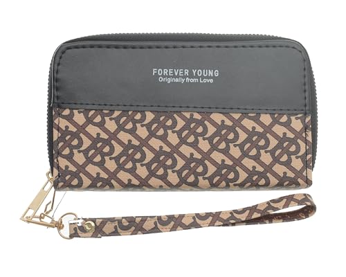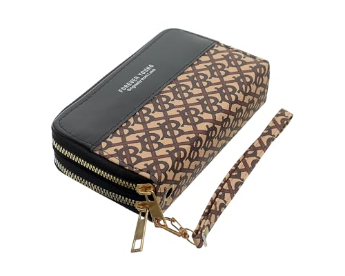 Generic - Faux Leather Large Wallet Modern Print Design Contains Two Zipper Pocket With Divided Interior Business Card Pockets And Includes Hand Strap For Women - Multi Color