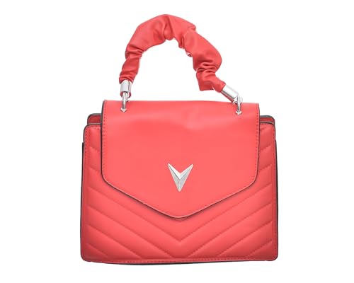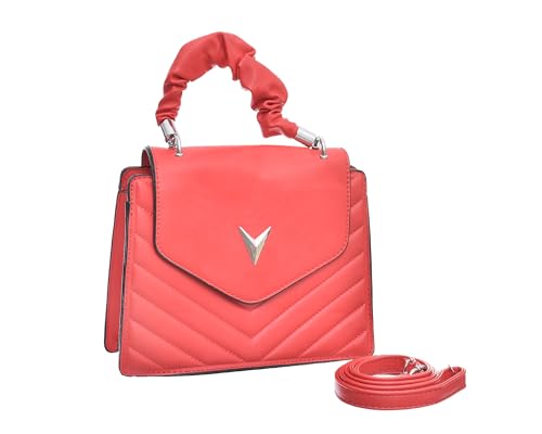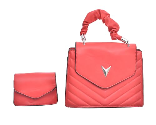 Generic - Faux Leather Medium Handbag Modern Design Small Leather Handle With Metal Long Strap And Small Wallet For Women - Red Silver